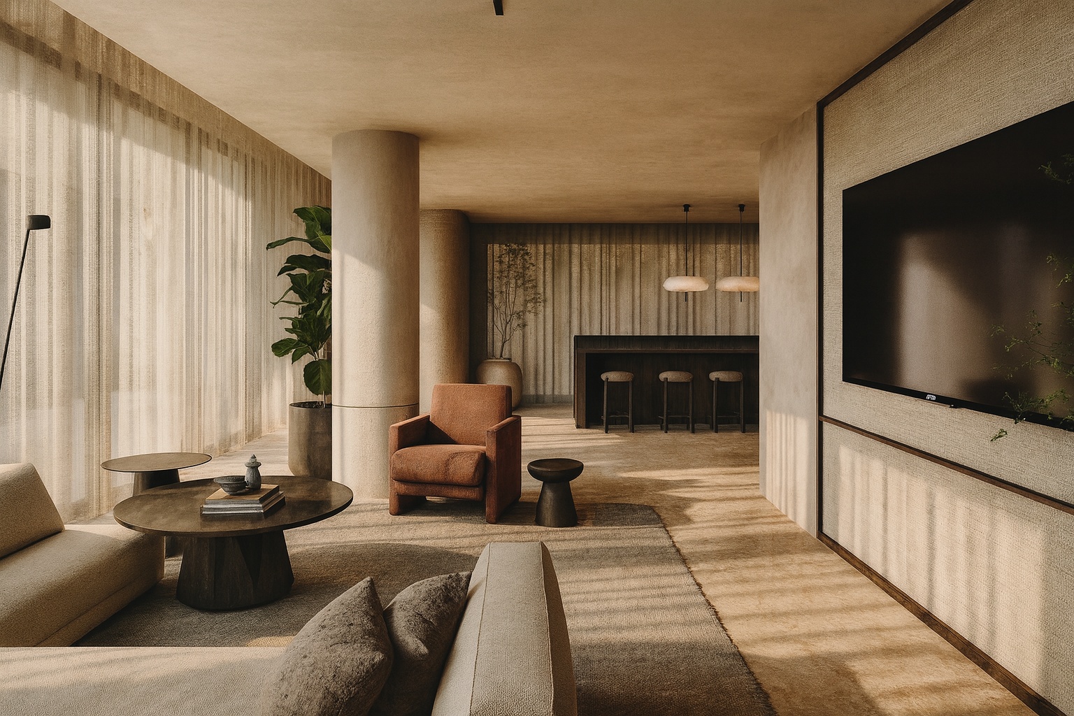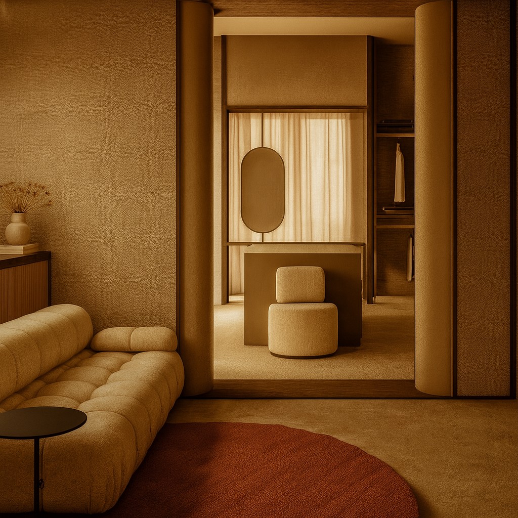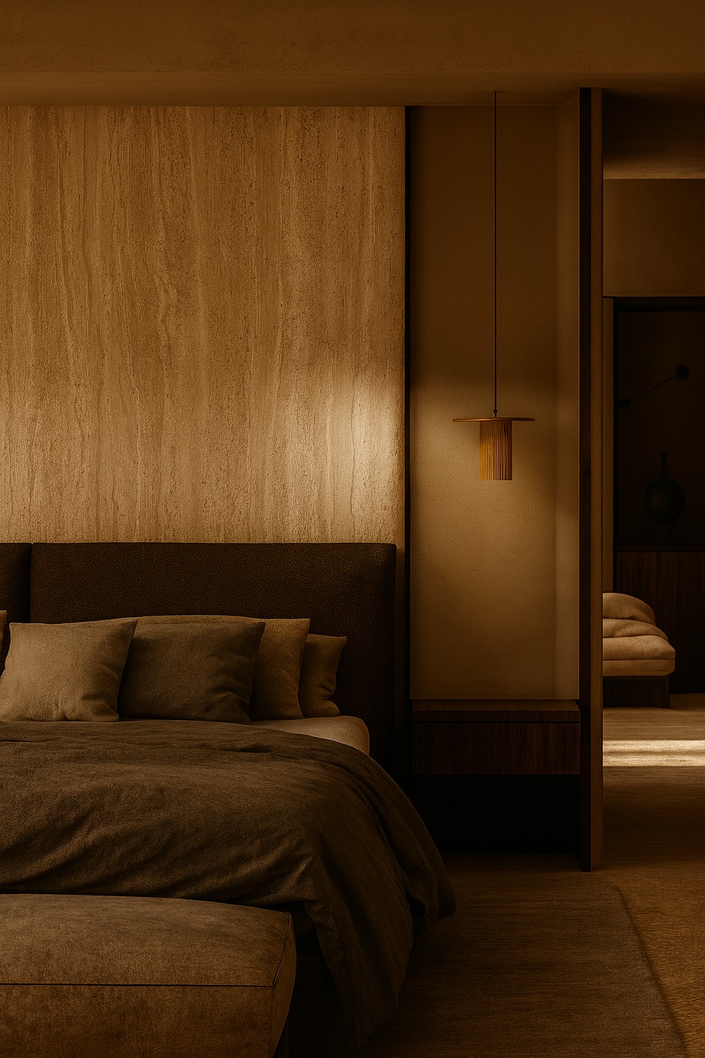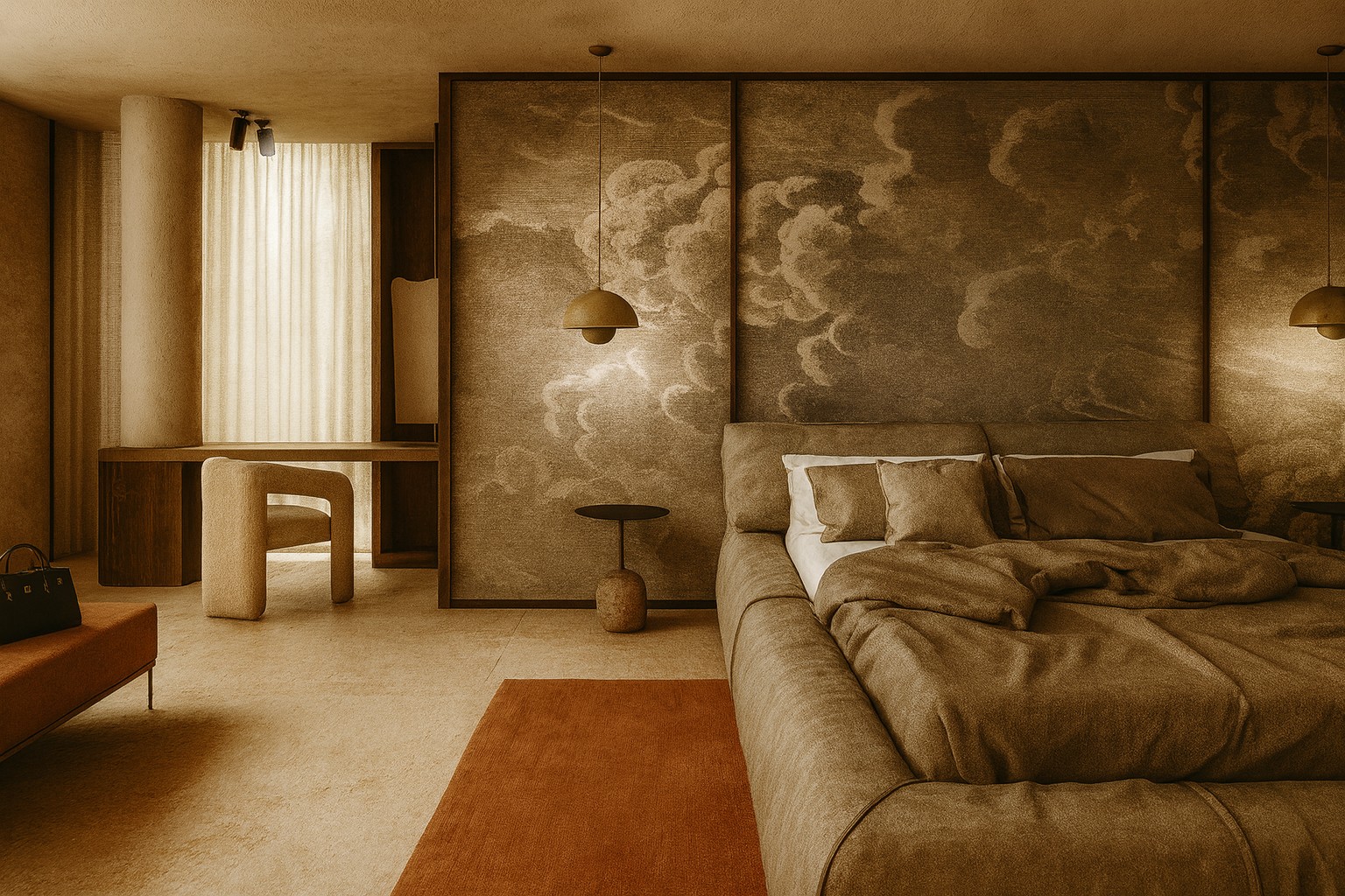 Abbiamo scelto con attenzione materiali naturali come legno, marmo e tessuti di cotone e lino, accostati a carte da parati che aggiungono calore avvolgente agli ambienti. Questa fusione armoniosa di elementi naturali e dettagli di design incarna l’essenza della nostra filosofia, che mira a creare connessioni e stimoli sensoriali con l’ambiente circostante.