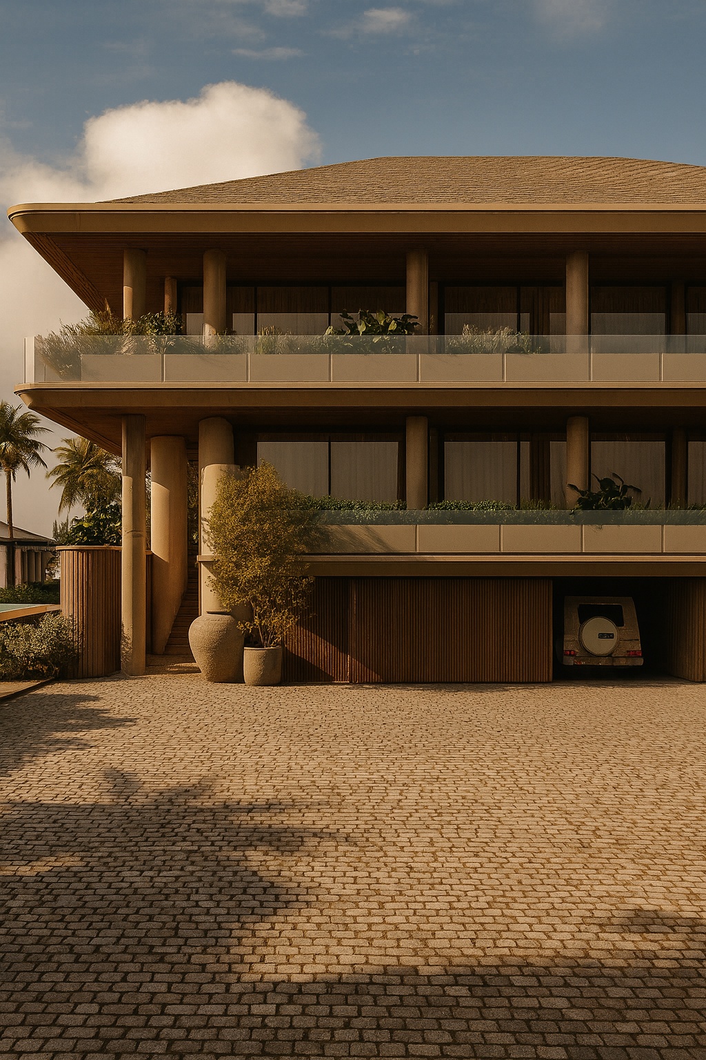 Ad Accra, in Ghana, abbiamo dato vita a una residenza privata di 1.800 mq, puntando a creare un ambiente elegante e raffinato. Il nostro obiettivo è stato trasformare l’intera abitazione in uno spazio sofisticato ed esclusivo, dove ogni dettaglio contribuisce a creare un’atmosfera di armonia e fluidità. Le superfici delle finestre sono state ampliate e arretrate, alleggerendo visivamente la struttura e conferendo chiarezza all’estetica esterna. La progettazione attenta di tetti, aree verdi e colonne ha arricchito il design, mentre curve delicate su pareti e mobili hanno unificato gli spazi, infondendo un senso di continuità.