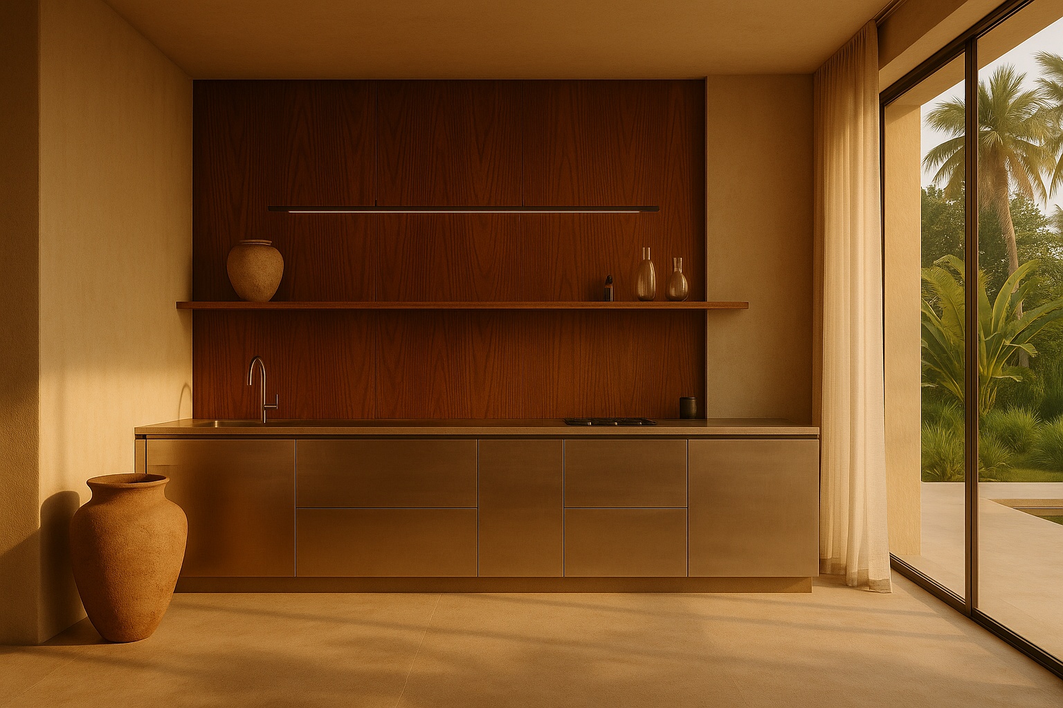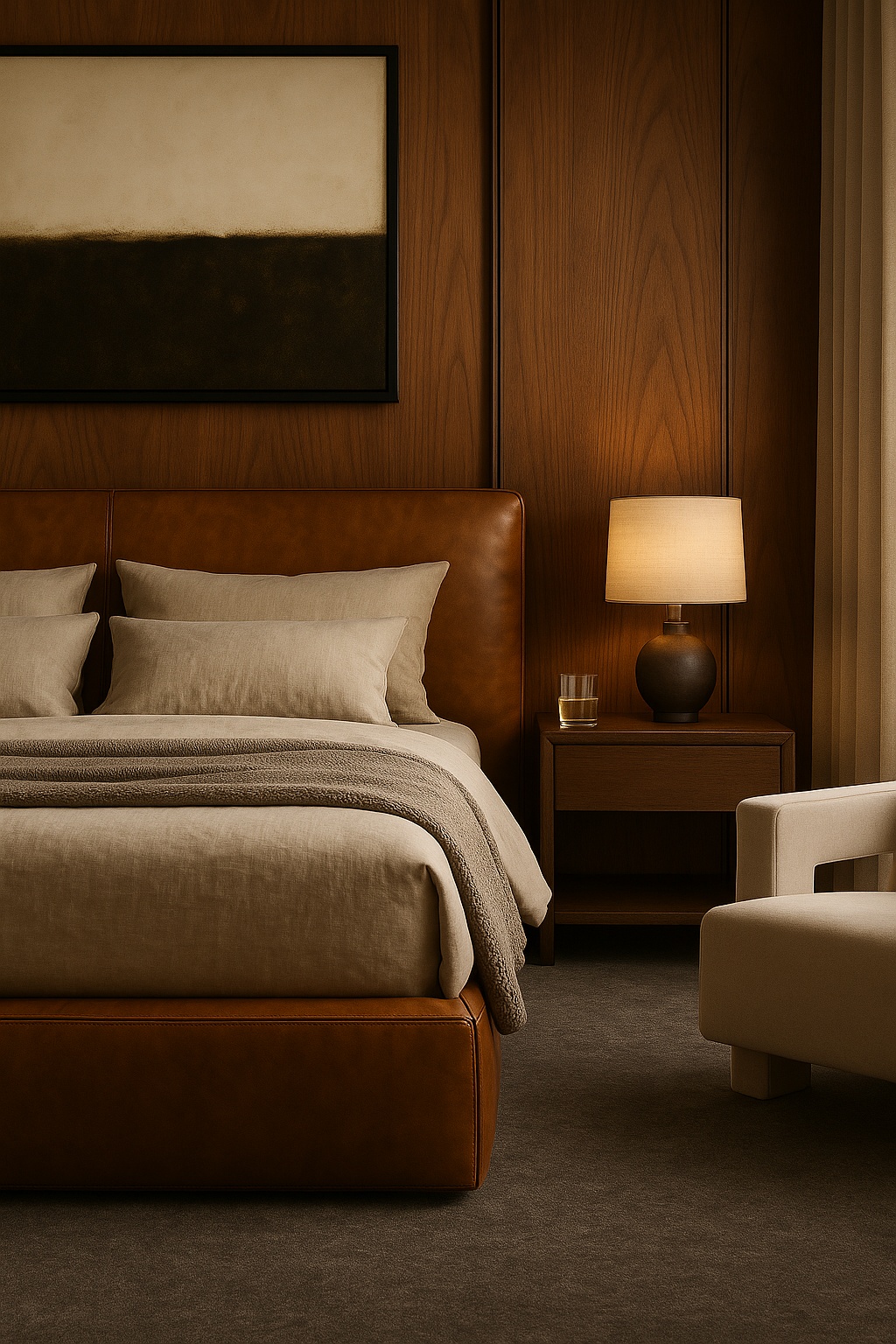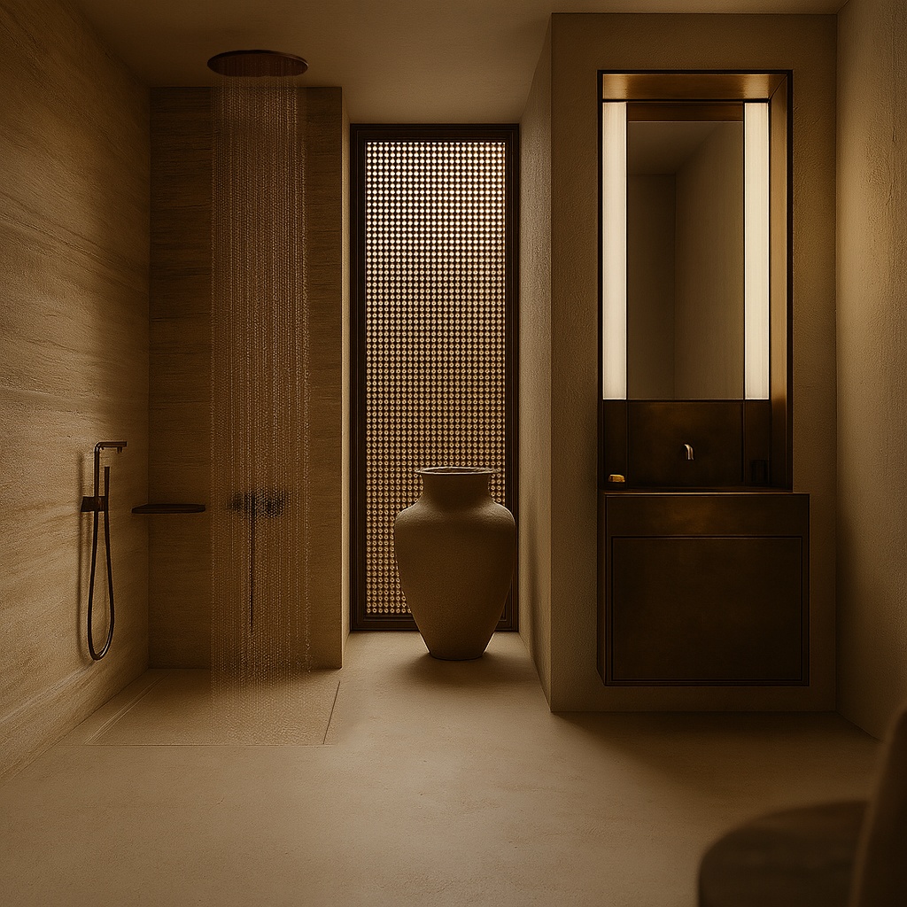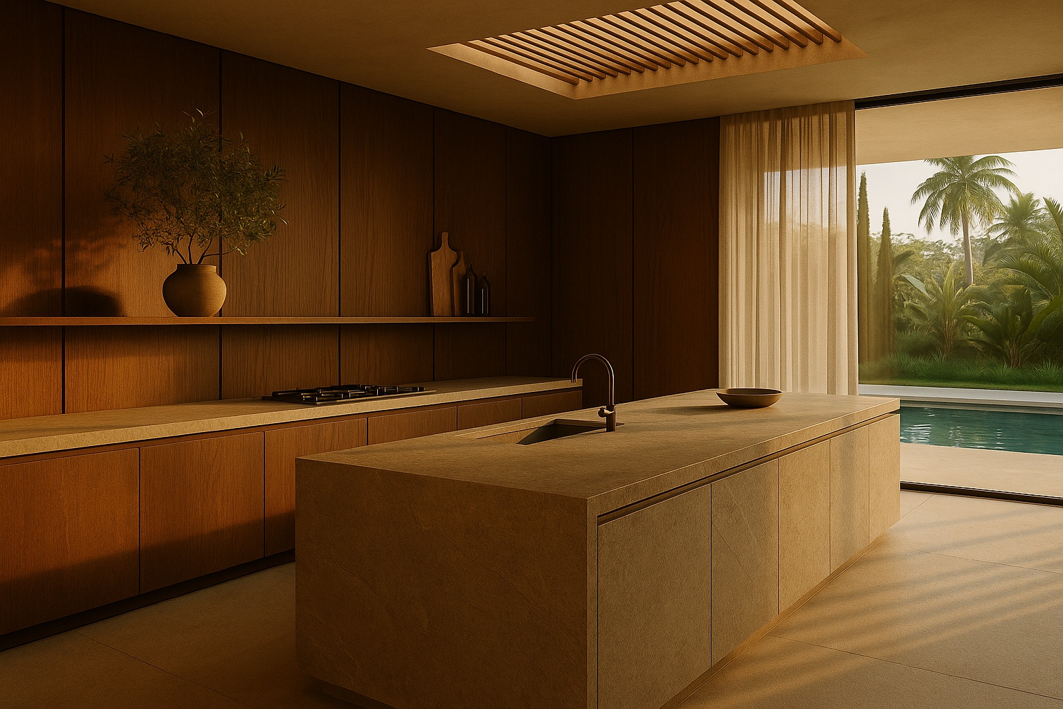 La scelta dei materiali segue la stessa filosofia: pietra naturale, legni caldi e tessuti morbidi convivono con texture raffinate che mantengono un carattere autentico e sofisticato. Ogni dettaglio è pensato per trasmettere una sensazione di continuità, unendo comfort ed eleganza a un profondo rispetto per l’ambiente.